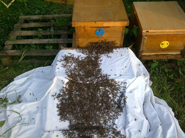 "Májový roj stojí za fúru sena". Ten náš sa nám podarilo osadiť do úla, hoci časť z neho bola usadená vo vysokej tráve. Navečer už obýval nový nádstavkový úľ.