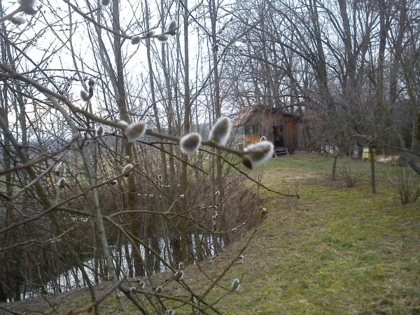 Jahňady vŕby rakyty (bahniatka) neďaleko včelnice sa o niekoľko dní prefarbia na veľkonočnú žltú a včelám pri priaznovom počasí ponúknu bohatý zdroj peľu, ktorý je dôležitou bielkovinovou zložkou potravy včelstva v tomto období.